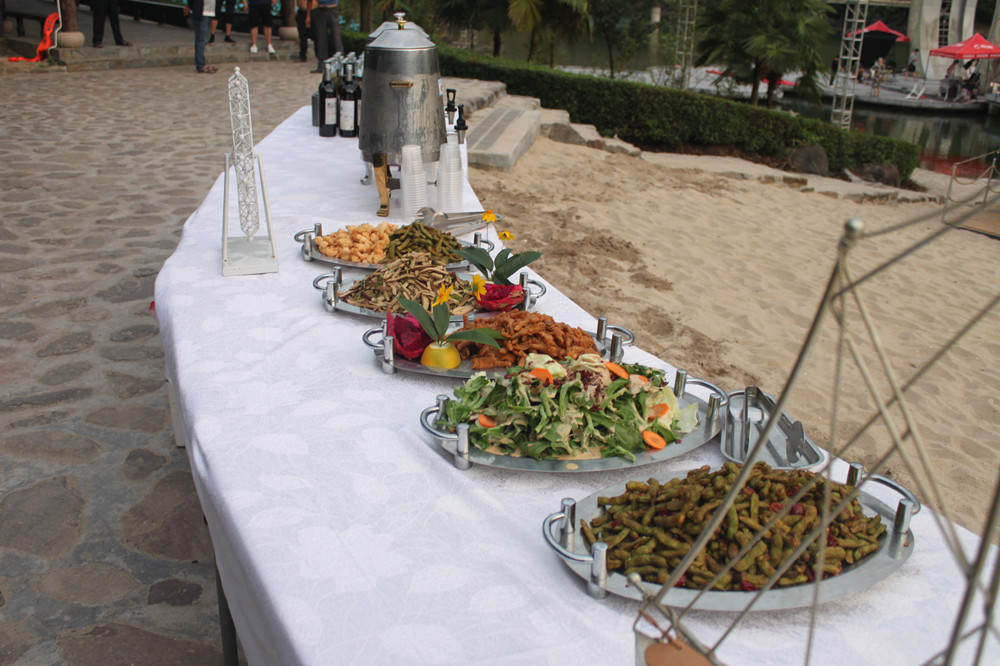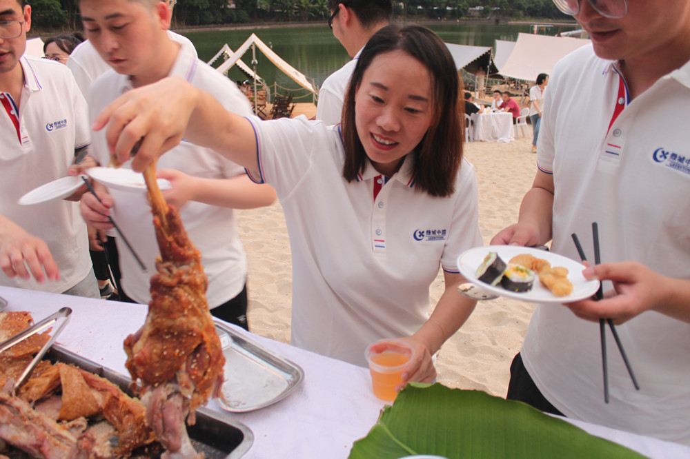 水玩累了,那就好好休息会,享用我们的美味晚餐吧,这次的户外野餐我们专程请到了金华知名户外用餐的企业,食物丰富、酒水多样,还有烤全羊,夜幕之下,天幕围坐,好是惬意!