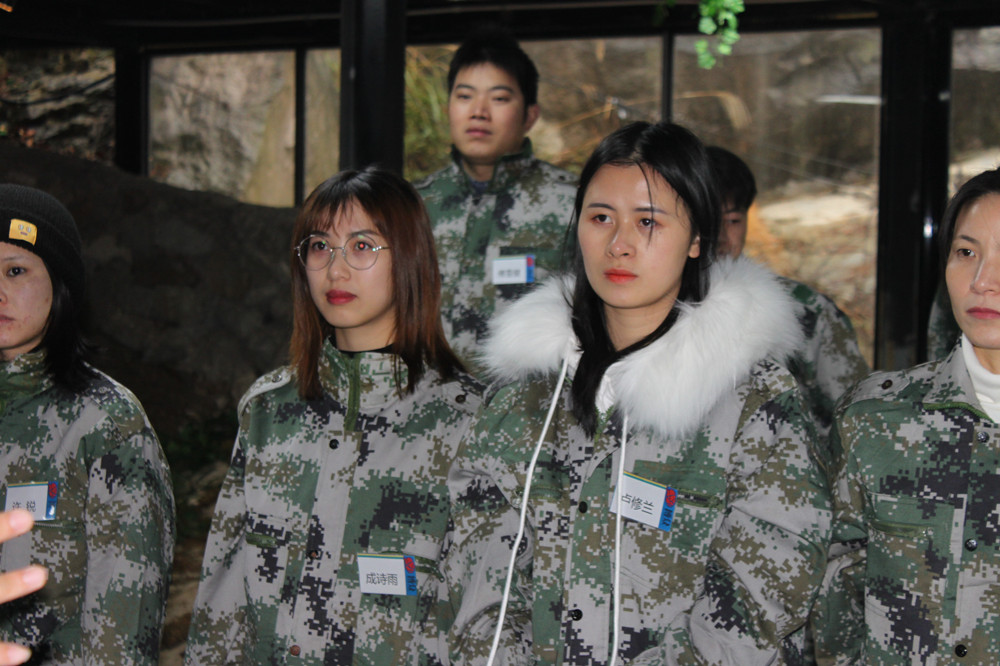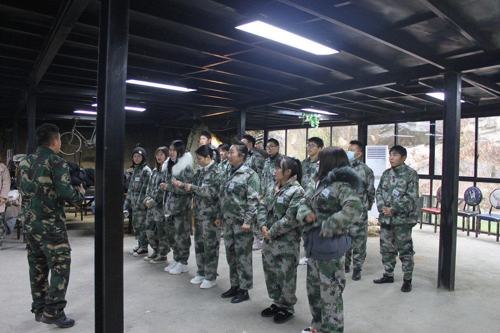 今日老天爷视乎又和我们开了一个玩笑,春天的季节,冬天的气温。还淅淅沥沥的下着雨,就这样的天气里我们迎来了美屿家居的19位伙伴,开始了一天的素质拓展挑战营的训练,当他们换上军装的那一刻,教官就按照战士的标准严格的要求他们,学习一定是在不舒服里成长起来的。要想让团队有超强的执行力必定需要严明的纪律,纪律宣导: