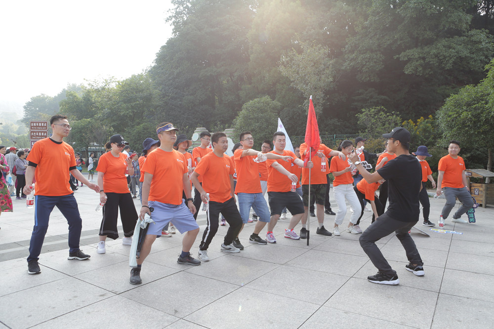 第二天,我们一起征服江郎山,爬山之前离不开的热身还是有必要的,看教练的动作,像不像在拉“粑粑”
