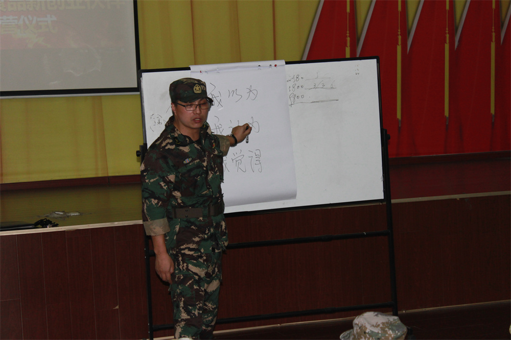 早上半天的军事训练让大家变的紧张起来了,不管从集合还是用餐都让大家从散漫变得紧迫,下午正式开营了,担任本次拓训的总教练依然是浙江博众的首席培训师曹老师,他深入浅出的培训让大家受益匪浅。